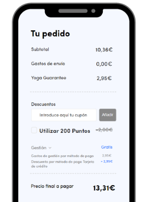 Por cada 1€ que gastes en Carethy recibirás 5 puntos, lo que equivale a un ahorro de 0,05€. Por ejemplo, si realizas un pedido por valor de 10€, recibirás 50 puntos, lo que te dará un descuento de 0,50€. Cuando gastas 20€ o más, puedes ganar hasta 100 puntos, lo que equivale a un ahorro de 1€. Tenga en cuenta que puede ganar hasta 100 puntos por pedido.