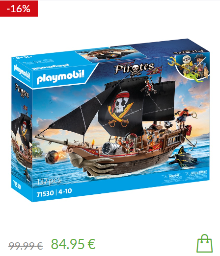 Visita JOGUIBA para comprar tu PLAYMOBIL CORSAIR hoy y consulta códigos de descuento exclusivos para que tu compra sea aún mejor. Recuerda que el envío es gratuito en pedidos superiores a 59 €, por lo que ahora es el momento perfecto para ampliar la sala de juegos de tu hijo con este barco pirata lleno de acción. La aventura te espera: ¡zarpa con PLAYMOBIL ahora!